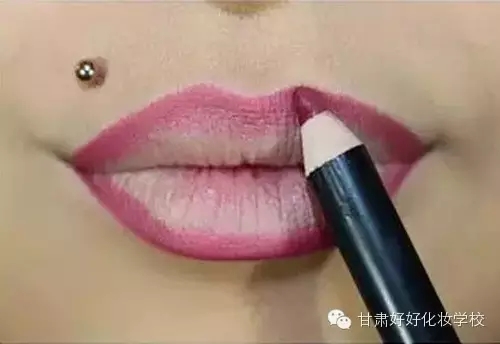 STEP2:用深玫瑰色的唇线笔勾勒出丰满的唇部轮廓。
