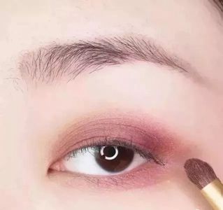 接下来选一个浅粉色眼影,用刷子来回轻扫双眼皮褶子的部位,并着重加深眼尾、下眼睑。